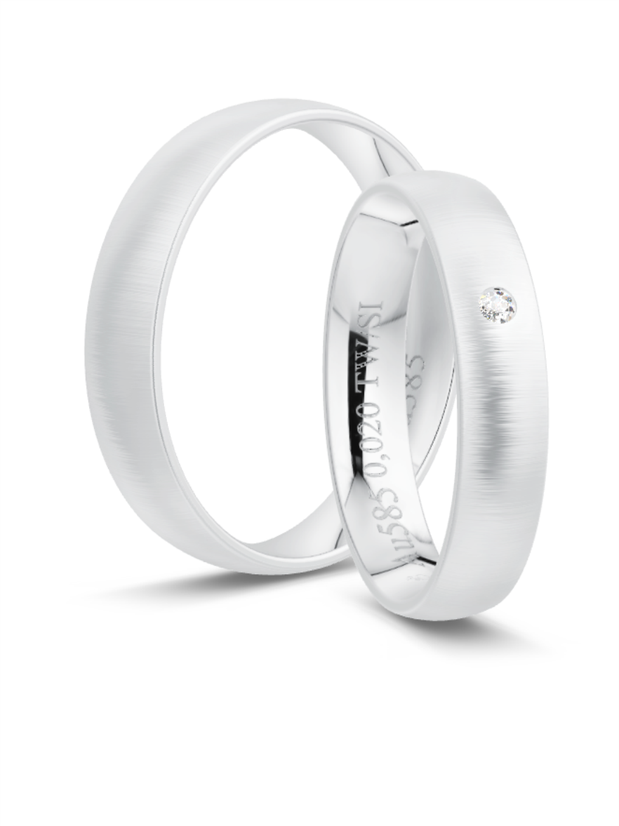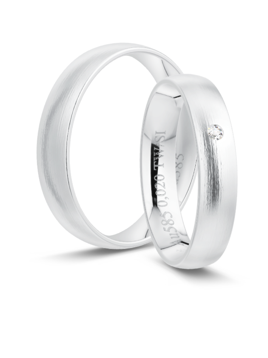 Unsere Ringe sind komplett Massiv und Handverlesen. Unsere Weißgold ringe werden mit Palladium gemischt und werden durch und durch in Weiß hergestellt.